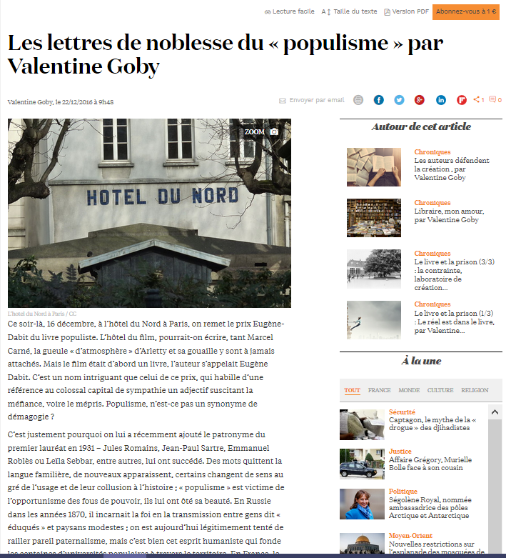 http://www.la-croix.com/Debats/Chroniques/Les-lettres-noblesse-populisme-Valentine-Goby-2016-12-22-1200812257