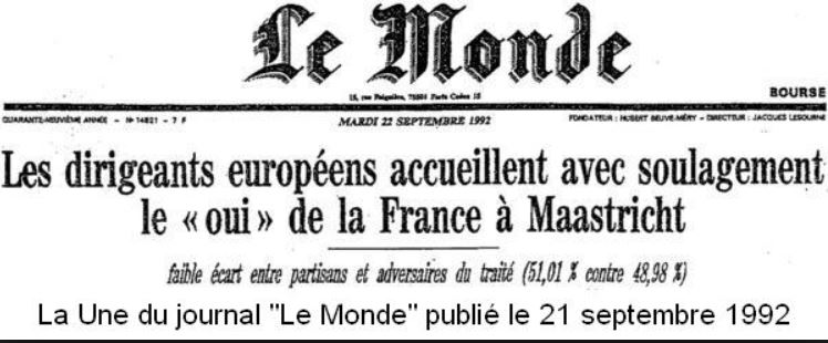 27 ans après, le traité fondateur de l’Union européenne est régulièrement rendu responsable de tout ce qui ne va pas. Signé par les douze États membres de la Communauté économique européenne, le 7 février 1992 à Maastricht, son contenu déchaîne toujours les passions. Il faut dire qu’il ne fut ratifié par référendum, en France, le 20 septembre 1992, que par une très courte majorité. Le OUI ne l’avait emporté qu’avec 51,04 % des voix.