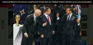Sur le coup de 19 heures, le dimanche 15 juillet, c’est sous l’orage, la pluie et des confettis dorés, qu’eut lieu sur la pelouse du stade Loujniki de Moscou, la remise du trophée et des médailles ? Les caméras ont capté le chef de l’État français regardant le ciel menaçant. Il n’imaginait pas, à cet instant, que le ciel allait lui tomber sur la tête quelques jours plus tard !